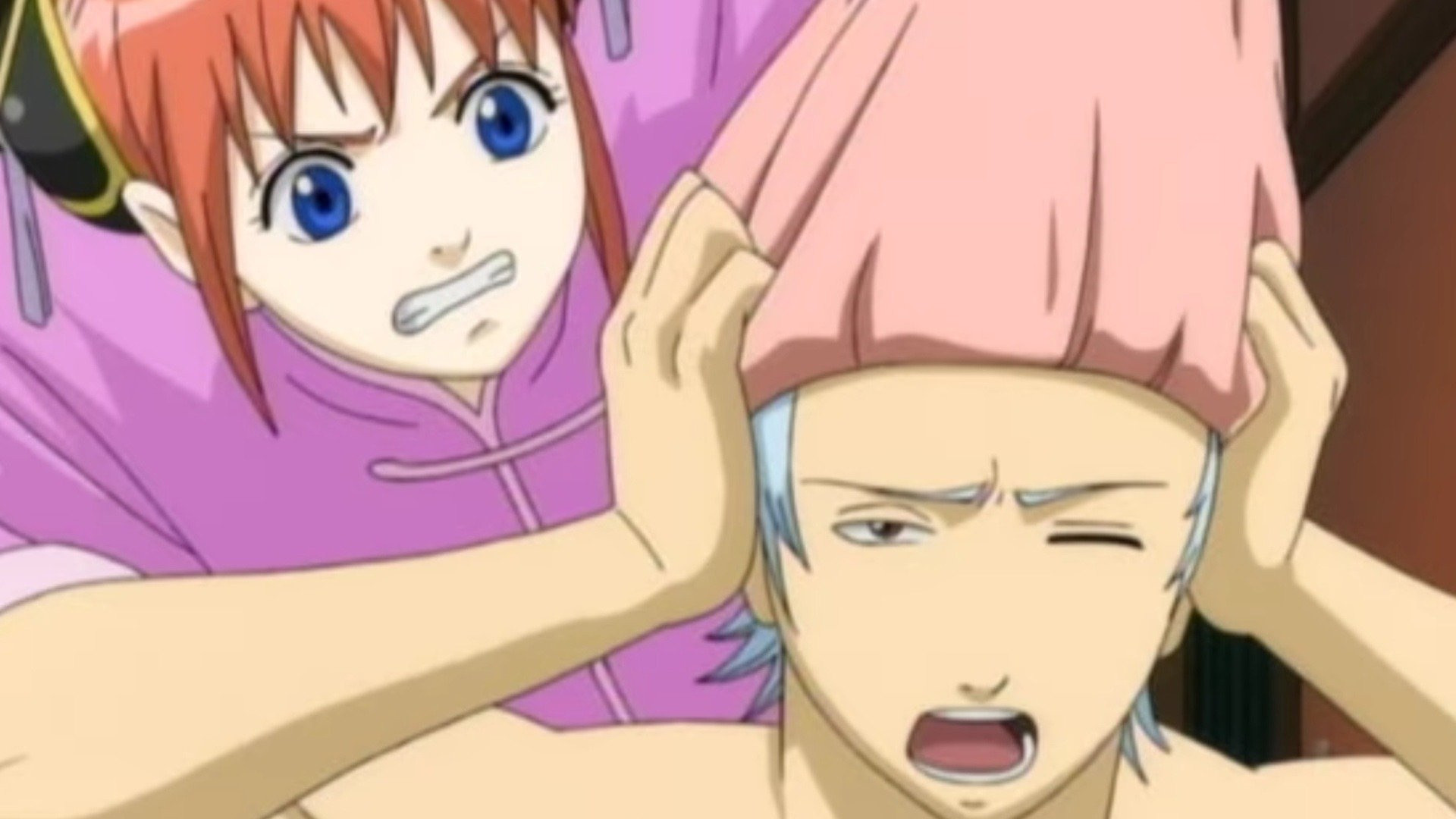 Part 1 – On top of the Odd Jobs building, two awfully familiar men seem to be scheming. They manage to hide themselves from several visitors, but they are spotted by the man who’ll cause the biggest mess of all: Katsura! Part 2 – Gintoki’s alarm goes off, and he decides to takes a shower to sober up. While in the shower, something happens to Gintoki! Seems Kagura and Shinpachi are also caught up in the mess, and they wonder how this could have happened to them… The three heroes face a crisis like none other!