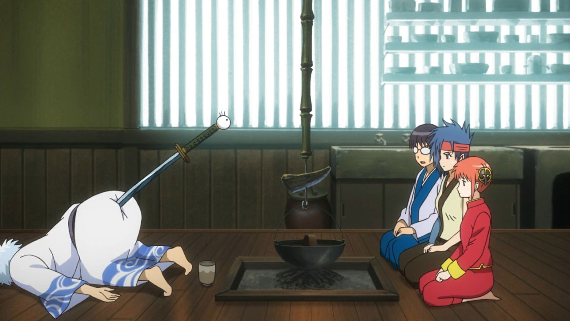 The Odd Jobs encounter a strange sword at Tetsuko’s smithy, and it grows attached (quite literally) to Gintoki’s behind!