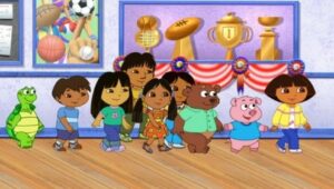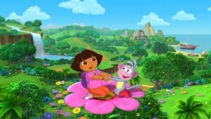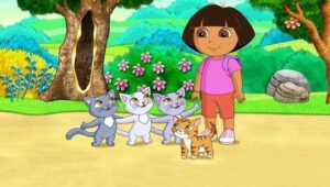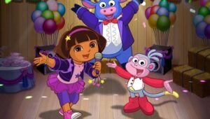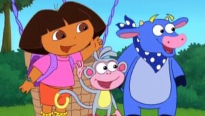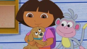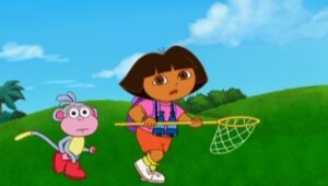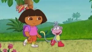 A young girl named Dora goes on adventures with her red boot-wearing monkey named Boots.